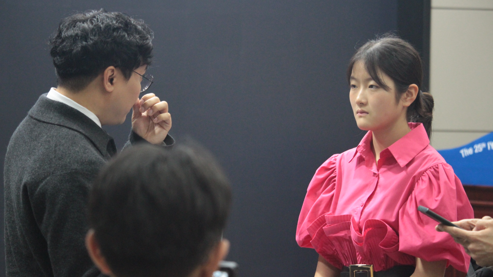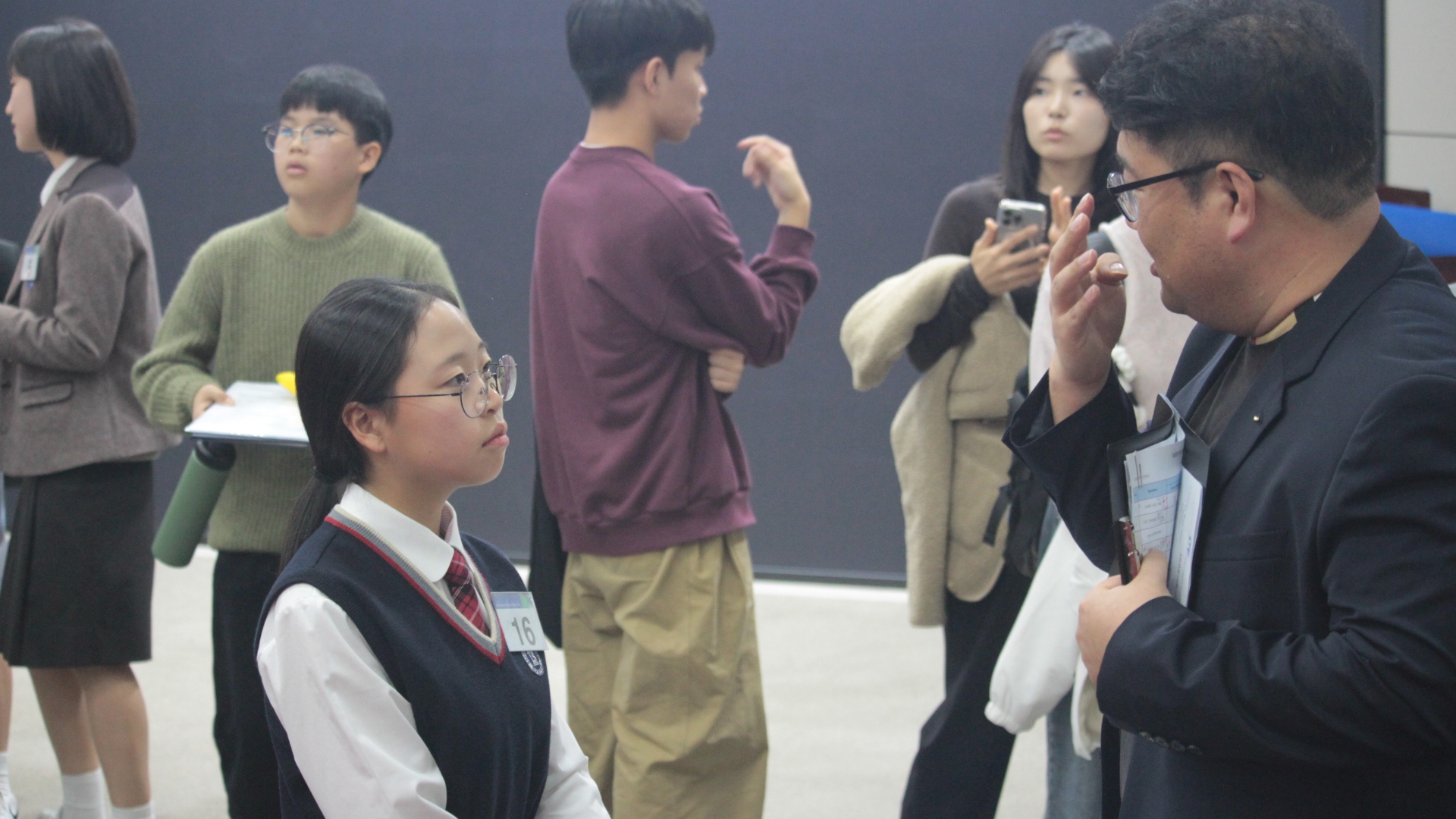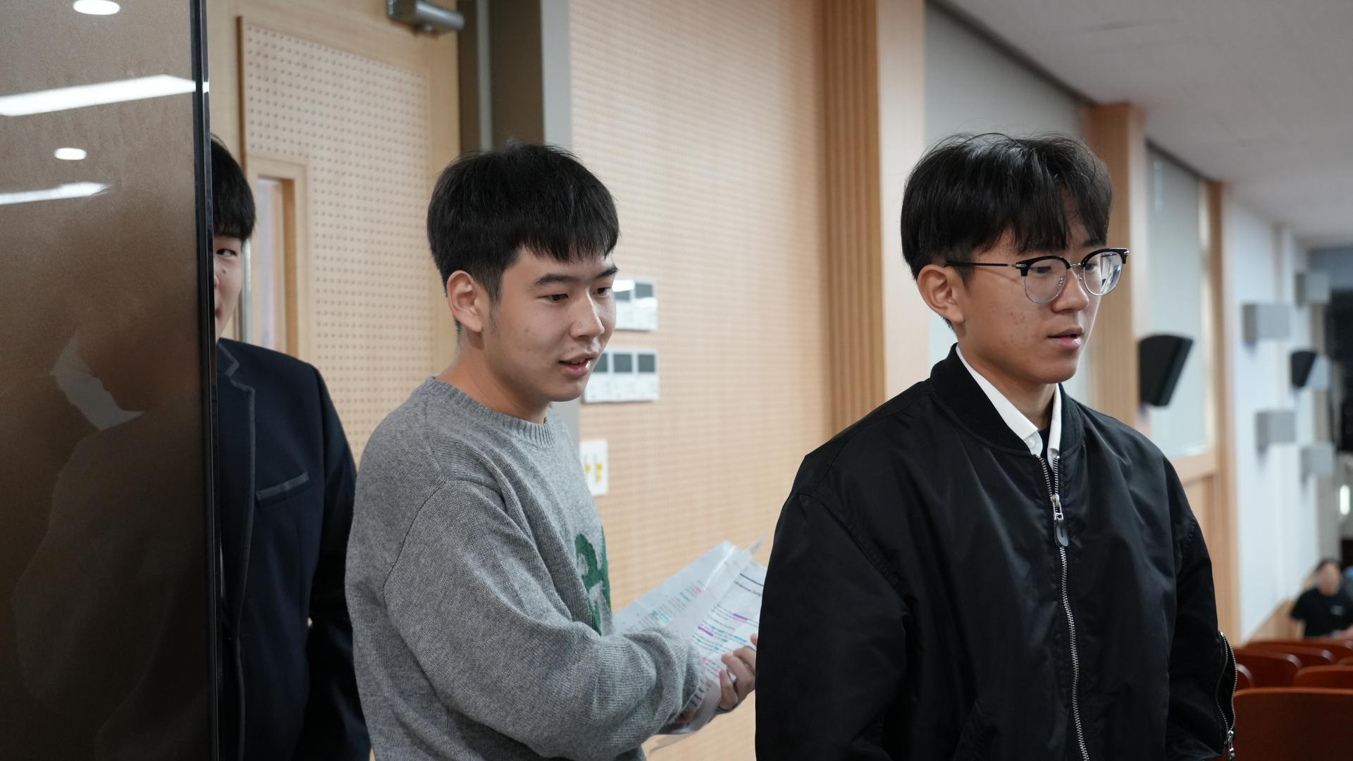 결승진출과 더 나은 스피치를 구현해내기 위해서 진지하게 심사위원들에게 피드백을 받는 학생들의 눈빛이